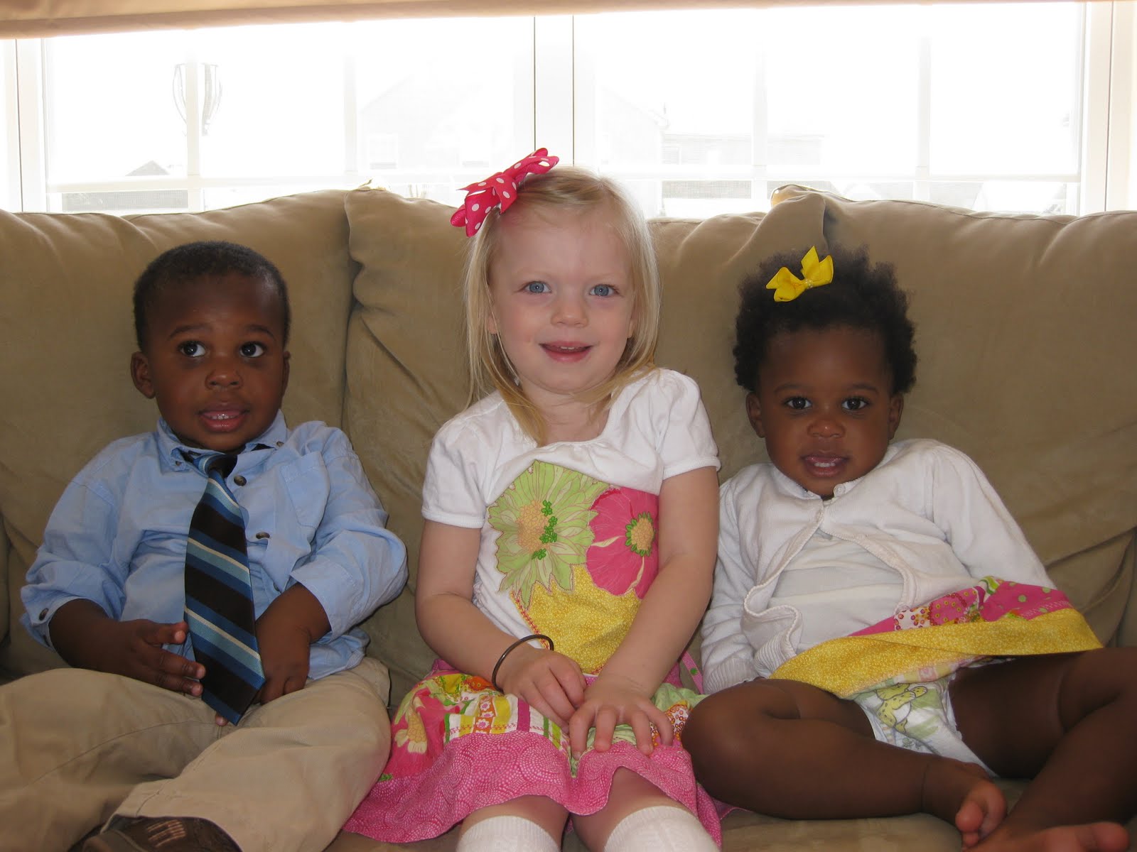 Both kids are holy terrors and give us a run for our money. The other day my friend/neighbor was over with the 4 yr old she babysits. Katie and Laurel where upstairs playing. Addy and Marcus followed them up and Caroline and I sat downstairs talking. I didn't think much of it, our house is childproof and we keep all the doors to the bathrooms shut AND I had told the 3 yr old and 4 yr old to keep an eye on them. About 20 mins later I call Katie into the hallway to ask her what Addy and Marcus are doing, she says; "I don't know". I asked her where they were; "I don't know." I run upstairs and the bathroom door is shut, but I hear noises in there, I open it and find two drenched children--I'm talking it looked like they had been dipped in the pool (except for their heads/hair). The bathroom floor was wet, AND there was NO water in the toilet--NONE! Gross!